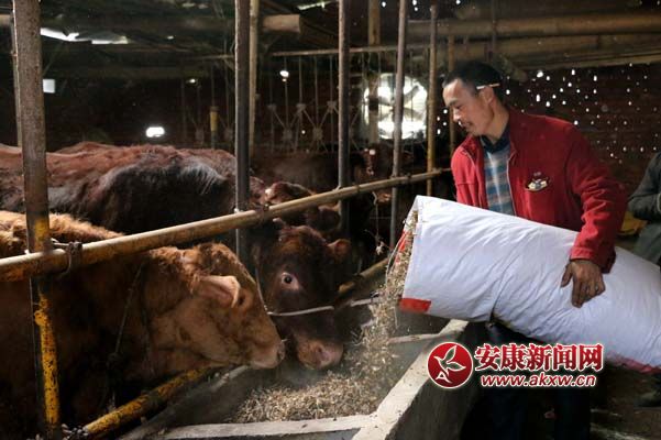 安康新聞網(wǎng)訊(通訊員 周濬 歐佩)一袋袋秸稈飼料剛倒入料槽,牛兒就啃食起來,滿耳都是牛兒咀嚼的聲音。今年剛滿40歲的李增鋒,是漢濱區(qū)江北辦新義村的養(yǎng)殖大戶……
