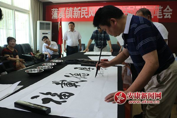 安康新聞網(wǎng)訊(通訊員 張靜)7月21日,在蒲溪鎮(zhèn)文學(xué)藝術(shù)界聯(lián)合會成立之際,新民風(fēng)進(jìn)萬家活動(dòng)書法筆會隆重舉行。漢陰縣文聯(lián)主席沈儉、各文聯(lián)分會主席及書法界大家應(yīng)邀參加,筆會現(xiàn)場書法家們即興發(fā)揮、揮毫潑墨,為蒲溪鎮(zhèn)留下不少值得珍藏的墨寶。