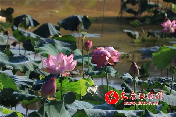 “我昨天早上在塘子里采蓮蓬的時候,突然發(fā)現(xiàn)了一株并蒂蓮,感覺非常的驚奇,然后在網(wǎng)上查閱資料,得知它的發(fā)生概率是十萬分之一,于是我就拍了些照片發(fā)到朋友圈里,我從小到大大大小小的荷花都見過,而且這個塘子已經(jīng)種了九年了,在現(xiàn)實生活中這種并蒂蓮是第一次見到。”據(jù)并蒂蓮的發(fā)現(xiàn)者況濤回憶,難得一見的并蒂蓮是7月22日發(fā)現(xiàn)的,在陽光照耀下,并蒂蓮一枝獨秀,它的一枝花莖上長出兩個大小相似的粉紅色花苞,嬌艷欲滴,格外搶眼。