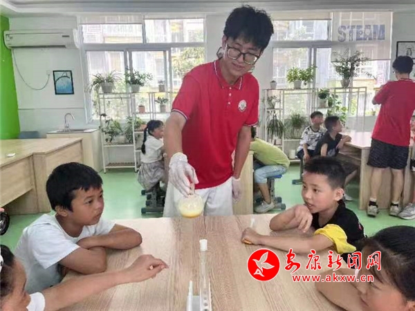 鳳臺小學(xué)學(xué)生郝錦燃表示,這些大哥哥大姐姐非常認真負責(zé),給我們介紹一些知名的大學(xué),讓我們增長了見識。其次課間他們會帶我們打乒乓球、打籃球,帶我們做一些化學(xué)實驗,讓我們增長了知識,使我們的暑假過得更有意義。