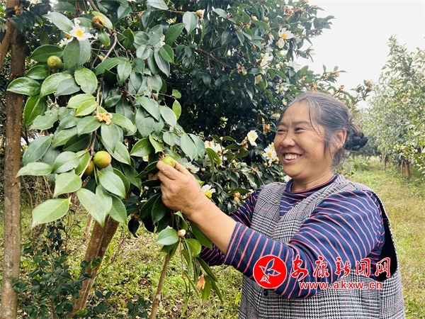 “今年在這個(gè)園子里從正月份干到現(xiàn)在,大概有30000多塊錢工資。這兩天在茶園里撿茶果150元一天,再過幾天園子里還割草,活還很多,活還好做、輕松。”村民余祖錄樸爽朗的笑聲和自豪的夸贊聲給這個(gè)靜謐的村子孕育了無限生機(jī)。陽光仍盛,他手中的活兒還未停歇,天高云淡風(fēng)輕,抬眼可望的勝雪油茶花勾勒出了一幅美好的山鄉(xiāng)“豐”景圖。