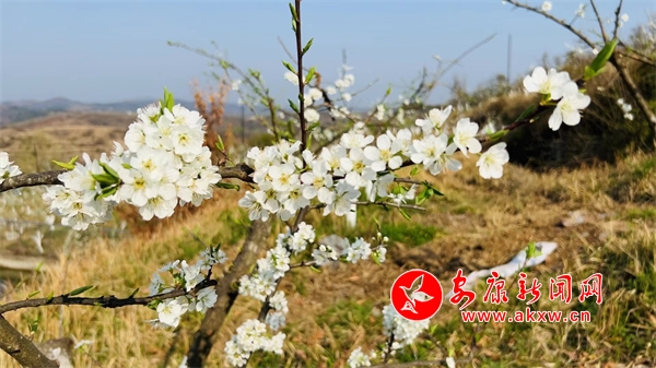 走進(jìn)趙家河村,放眼望去,潔白的李花隨山體連綿起伏,就像海里的浪花朵朵,一片生機(jī)盎然,走近一看,一串串、一簇簇的李子花開得正盛,在春風(fēng)的吹拂下輕輕搖曳,每一朵花都開得燦爛奪目,潔白如玉,宛如一顆顆璀璨的明珠?諝庵袕浡幕ㄏ悖屓诵臅缟疋,不少游客結(jié)伴而來,賞花、拍照,盡情享受春天的美好。