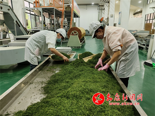 在漩渦區(qū)域加工廠的制茶生產(chǎn)車間內(nèi),鮮嫩的茶葉經(jīng)過殺青、揉捻、干燥、提香等程序,醇香的茶便新鮮出爐。“今年在開采之前,鎮(zhèn)政府面向茶葉產(chǎn)業(yè)合作社負(fù)責(zé)人和技術(shù)骨干組織了一次統(tǒng)一的培訓(xùn),對采摘手法,采摘標(biāo)準(zhǔn)進(jìn)行了統(tǒng)一的指導(dǎo)培訓(xùn),便于我們后面的生產(chǎn)和后期產(chǎn)品的把控。”茶廠負(fù)責(zé)人馮衛(wèi)平說。