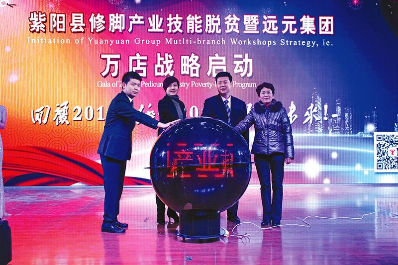 2016年2月2日,紫陽縣發(fā)展修腳產業(yè)推進技能脫貧動員大會召開,遠元集團萬店戰(zhàn)略啟動。 陳剛攝紫陽縣職教中心成為國內第一個由政府主導的修腳技師培訓基地。 (……