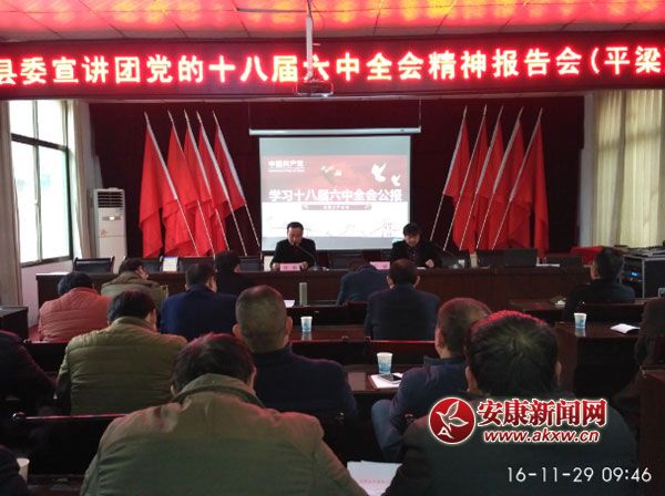 安康新聞網(wǎng)訊(通訊員 陳小磊)11月29日上午,漢陰縣委宣講團(tuán)到平梁鎮(zhèn)集中宣講黨的十八屆六中全會(huì)精神。該鎮(zhèn)黨委書(shū)記主持宣講會(huì),縣委宣講團(tuán)成員、縣紀(jì)委常委王斌……