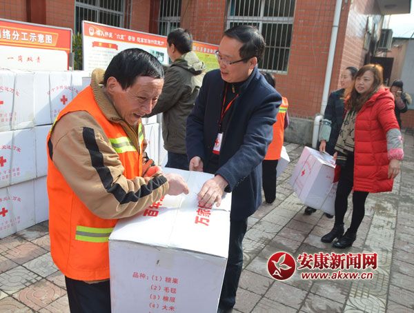 安康新聞網(wǎng)訊(通訊員 張小紅 周洪波)時(shí)值元宵佳節(jié),紫陽縣紅十字會為城關(guān)鎮(zhèn)和向陽鎮(zhèn)90名保潔員每人準(zhǔn)備了一個(gè)紅十字大禮包,為他們送上了新春禮物,祝福他們……