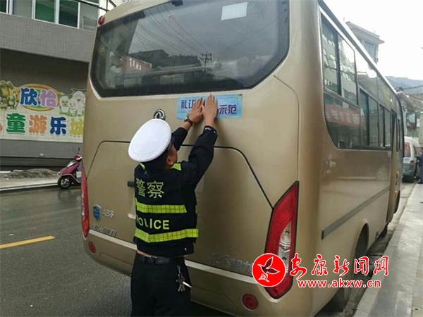 安康新聞網(wǎng)訊(通訊員 翁玲 張栓) 為加強(qiáng)道路交通安全管理工作的宣傳力度,營造濃厚的文明交通宣傳氛圍, 10月8日上午,嵐皋縣公安局交警大隊利用日常執(zhí)勤和開展交通安全宣傳活動的機(jī)會,在重點車輛上粘貼交通安全標(biāo)語車貼,進(jìn)行文明交通安全宣傳,為每一輛車“烙”上文明之印。