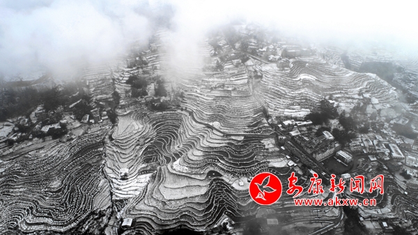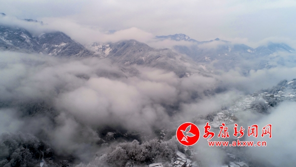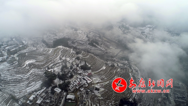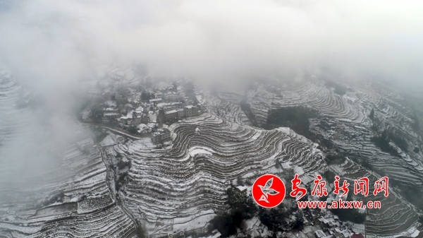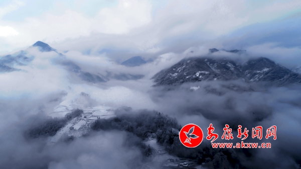 1月31日,嵐皋縣官元鎮(zhèn)雪后景色美輪美奐,山村宛若童話(huà)世界。(張昊 攝)