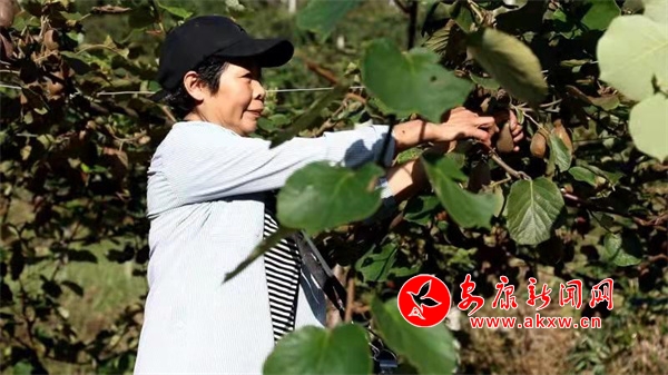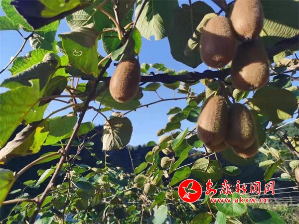 收成的喜風吹過的不止是蠟燭村東桃林一個地方,在蠟燭山北邊的佐龍村晏家堡獼猴桃園區(qū)里,一個個毛絨絨的獼猴桃正擠在綠葉間散發(fā)著誘人清香。