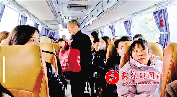 2月2日上午,在縣人社局發(fā)車現(xiàn)場,兩輛大巴一字排開,經(jīng)工作人員清點完人數(shù)確認無誤后,返崗務(wù)工人員們帶著行李有序上車。