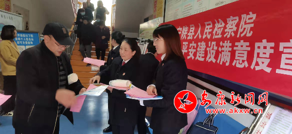 “我們是寧陜縣檢察院的工作人員,如果您接到12340來電,對(duì)寧陜平安建設(shè)滿意度情況進(jìn)行調(diào)查,即平安建設(shè)九率一度,您就是平安寧陜的代言人,您的一聲滿意是對(duì)我們工作的認(rèn)可和支持。”寧陜縣檢察院的一名工作人員對(duì)一名剛投完票的大爺說,熱情地送上宣傳冊(cè)、《建設(shè)平安和諧寧陜致全縣人民的一封信》以及宣傳紙杯。