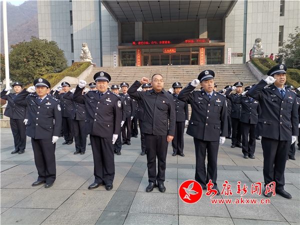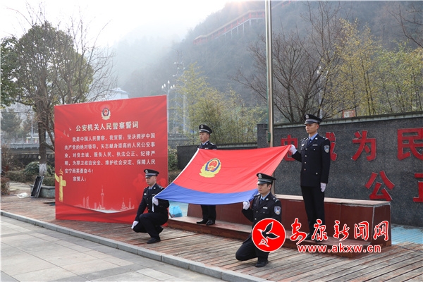 開展《公安機關(guān)人民警察誓詞》集中宣誓活動。組織30余名民警,面向中國人民警察警旗莊嚴(yán)宣誓。“我是中國人民警察,我宣誓:堅決擁護中國共產(chǎn)黨的絕對領(lǐng)導(dǎo)……”鏗鏘有力的誓言響徹全場,莊嚴(yán)的誓詞,增強了全警在警旗引領(lǐng)下忠誠履職盡責(zé)的使命感和責(zé)任感。宣誓活動結(jié)束后,全體參加活動的民警,面對警旗,敬禮致敬。