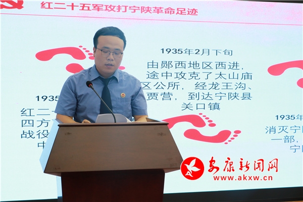 此次黨日活動(dòng)是寧陜縣檢察院結(jié)合常態(tài)化開展“尋訪革命舊址 保護(hù)革命文物 傳承革命精神”活動(dòng),以講解寧陜紅色故事,講述辦案體悟?yàn)橹饕獌?nèi)容,圍繞尋訪環(huán)節(jié)中干警的親身經(jīng)歷、親身感受結(jié)合公益訴訟檢察工作進(jìn)行演講,從而在尋訪中體悟黨和人民英勇奮斗的光榮歷史,及時(shí)發(fā)現(xiàn)案件線索;在辦案中加深對(duì)革命傳統(tǒng)和革命文化的體悟,強(qiáng)化做好保護(hù)革命文物工作的政治自覺、法治自覺、檢察自覺;在體悟中傳承紅色基因、感受信仰力量,把活動(dòng)成效轉(zhuǎn)化為對(duì)黨忠誠(chéng)、履職奉獻(xiàn)、擔(dān)當(dāng)作為的實(shí)際行動(dòng)。