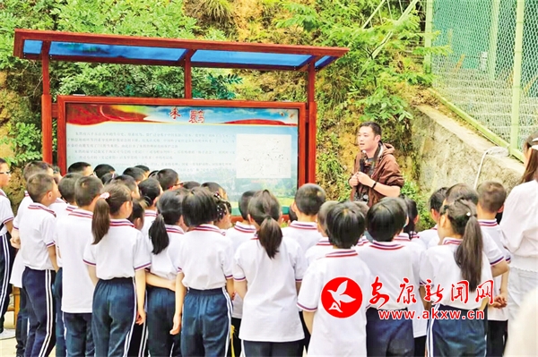 李夏為來(lái)訪的學(xué)生講解朱鹮保護(hù)相關(guān)知識(shí)