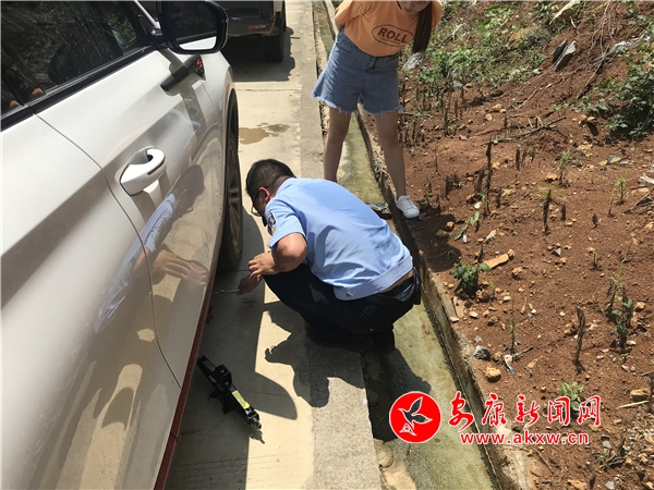 本網(wǎng)訊(通訊員 趙陳軍)“太感謝你們了,沒有你們幫忙,在這荒郊野外我真不知道怎么辦,爆胎后,我打了好幾家汽車修理部電話,都說這里路況差,太遠了不愿意來,……