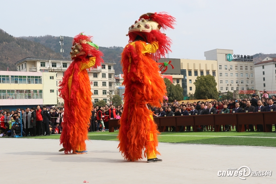 平利縣西河鎮(zhèn)新時(shí)代宣傳隊(duì)表演的傳統(tǒng)民俗文化節(jié)目《舞獅表演》。 向勝忠 攝