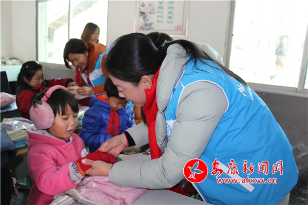 安康新聞網(wǎng)訊(通訊員 劉仁平)日前,平利縣援少會志愿者一行10人沐浴著冬日的陽光走進大貴鎮(zhèn)柳林小學,為該校的孩子們贈送暖冬大禮包,助力教育扶貧,讓孩子們感受到了冬日別樣的溫暖?h委宣傳部、經(jīng)貿(mào)局有關領導先后參與活動。