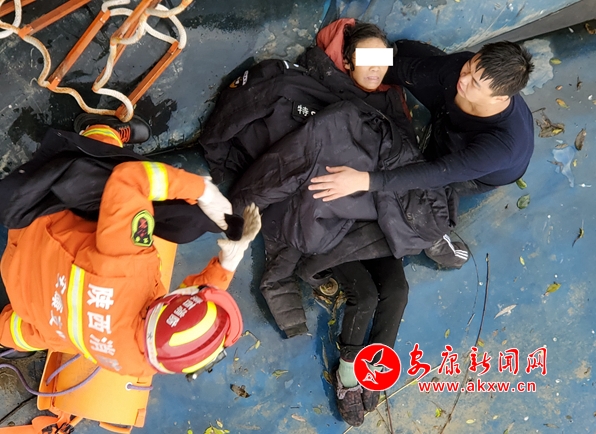 這時,消防大隊(duì)帶著工具也趕到了現(xiàn)場,在等待消防大隊(duì)布置軟梯的時間里,李強(qiáng)和何釗顧不上自己全身抽搐,又冷又疼的身體,第一時間將老人放平,把自己脫下的棉服緊緊裹在老人身上,抱著老人給她取暖,他們不斷呼喊老人,用按壓的方式對老人進(jìn)行急救。