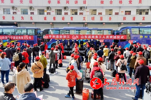 2月22日上午,平利縣第二批221名外出返崗務工人員,在縣政府的統(tǒng)一組織下,經過疫情篩查比對、體溫檢測、信息登記和出站安檢等系列嚴格檢查后,免費乘坐著11輛“務工專車”駛向廣東、浙江、山東3省9市目的地。(通訊員 陳本利)hsQ安康新聞網