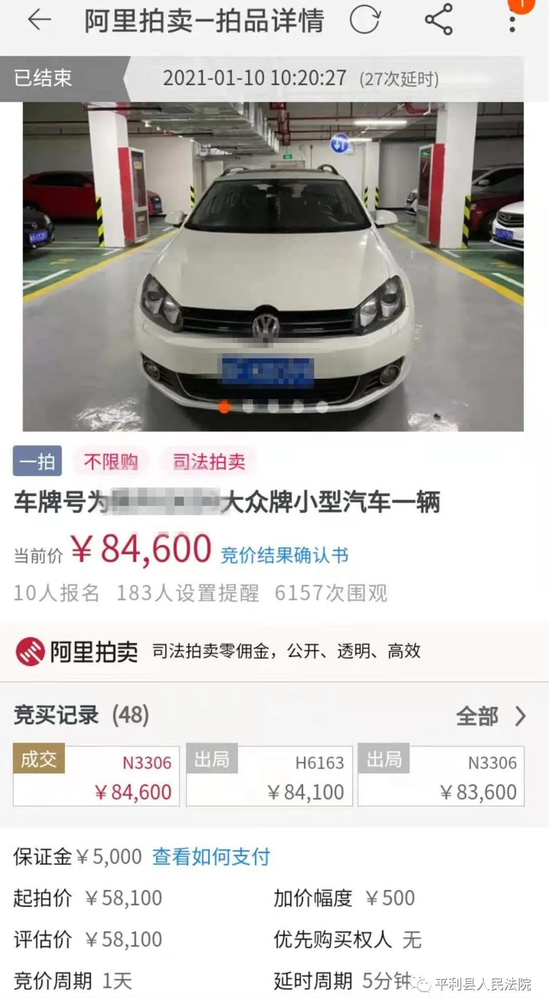 本網(wǎng)訊(通訊員 鄭欽)成交了!1月10日上午十點二十分,平利法院通過淘寶網(wǎng)網(wǎng)絡(luò)司法拍賣的一部大眾牌小型汽車以高出評估價百分之四十五的價格成功拍出。