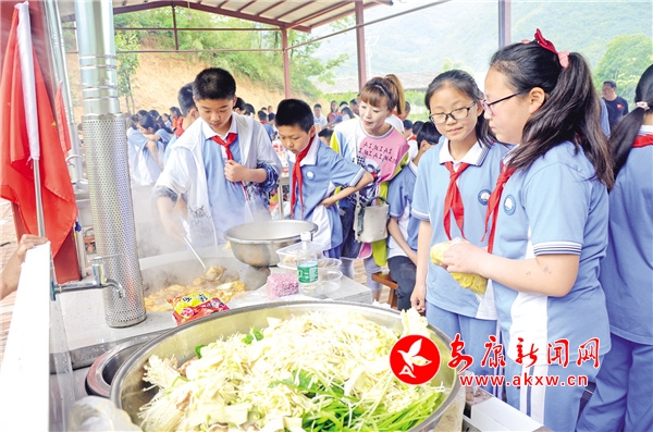 一草一木是記憶,一山一水皆含情。野營拓展課程是整個研學旅行的核心和精品,讓學生們親近自然風物,感知熟悉泥土的芬芳和厚重。課程營地集野炊、農(nóng)事體驗、野營體驗、手工制作、森林探險于一體,設有炊煙裊裊、荷塘春秋、耕耘樹藝、野蠻體魄四個活動區(qū)。200余種花卉草木,滿眼芳菲,爭奇斗艷,學生們參觀辨識認知植物,通過栽種、為植物掛牌、臨摹寫生等方式發(fā)現(xiàn)植物的奧秘,感受大自然的無窮魅力,做植物的朋友和環(huán)保小衛(wèi)士。枇杷、桃子、杏子、李子、板栗和梅子等多種果樹,可滿足學生們進行水果采摘體驗的需求,在東籬院里了解時令蔬菜、參與蔬菜種植,體驗耕種的樂趣和勞動的艱辛。在炊煙裊裊活動區(qū),10座老式土灶,配套10個操作臺、10個清潔池、10套石磨,一字整齊排開,選菜、洗菜、切菜、生火、煮飯、炒菜,一切都井井有條。學生們在寓教于樂的過程中,感受野炊的樂趣,初步掌握飯菜制作的基本步驟和相關技巧,并感受一蔬一飯的來之不易,懂得珍惜糧食和蔬菜。參與了活動的小學生唐梓涵深有感觸地說:“大家盡情享受一起努力做出來的美食,吃在嘴里,樂在心頭,格外美滋滋的。我們也知道了,父母每天精心為我們做好吃的,真的很不容易。”