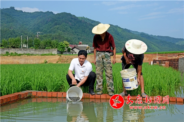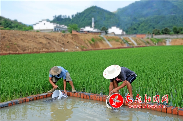 “我家去年種了3畝水稻,投放了50斤魚苗,養(yǎng)大后以40元一斤的價格賣了2000多元,其余的都分給親戚朋友嘗鮮了。我看到效果不錯,今年便多種了兩畝水稻,準(zhǔn)備多投放一些魚苗。”領(lǐng)了4桶魚苗的村民賈文林一邊往自家田里放著魚苗一邊說道。