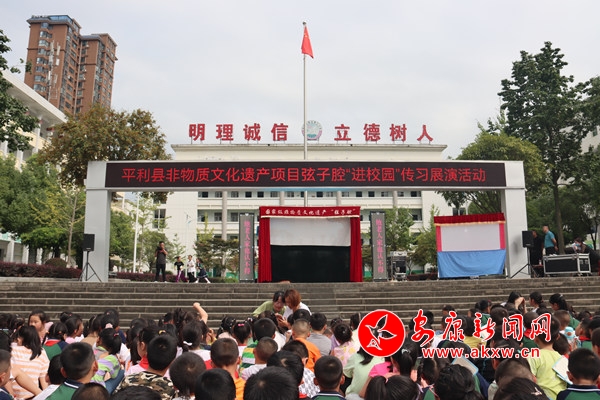 9月3日,平利縣國家級非物質(zhì)文化遺產(chǎn)保護項目“平利弦子腔”牛王班社走進平利縣城關(guān)三小,為兩千余名師生現(xiàn)場傳習(xí)展演。當天,老藝人們?yōu)楝F(xiàn)場師生表演了傳統(tǒng)劇目《真假美猴王》和《戰(zhàn)長沙》。(通訊員 陳少乾)emy安康新聞網(wǎng)