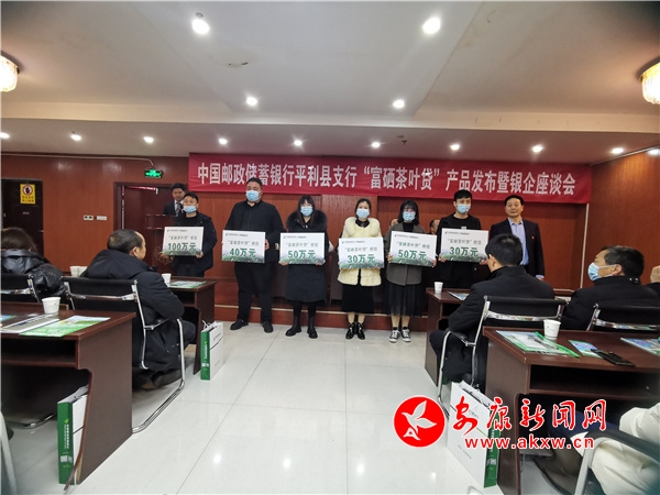 會議現(xiàn)場,郵儲銀行平利縣支行為6家茶業(yè)企業(yè)開展了“富硒茶葉貸”授信工作,合計金額300萬元,并現(xiàn)場受理14筆530萬元貸款。