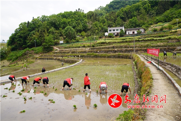 此次活動共組織22名黨員干部,36名群眾參與,大家挽起褲腿6人一小組、8人一小隊(duì),能手帶新手、干部帶群眾,相互交流拔苗、淘泥、扎捆、插秧技巧等,不一會兒綠油油的秧苗就在田里排成了整整齊齊的隊(duì)列。