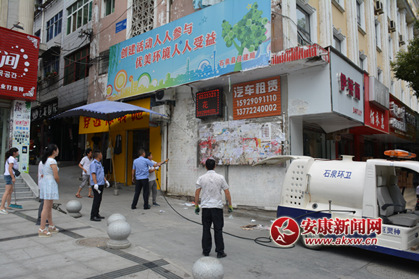 7.1前夕,縣住建局、城管大隊(duì)聯(lián)合環(huán)衛(wèi)所組織全體執(zhí)法人員走上街頭并出動(dòng)灑水車(chē),強(qiáng)力清污車(chē)對(duì)全城人行道、天橋、沿街的“牛皮癬”進(jìn)行清理,規(guī)范市場(chǎng)及占道經(jīng)營(yíng),以此拉開(kāi)了“百日整治”的序幕。