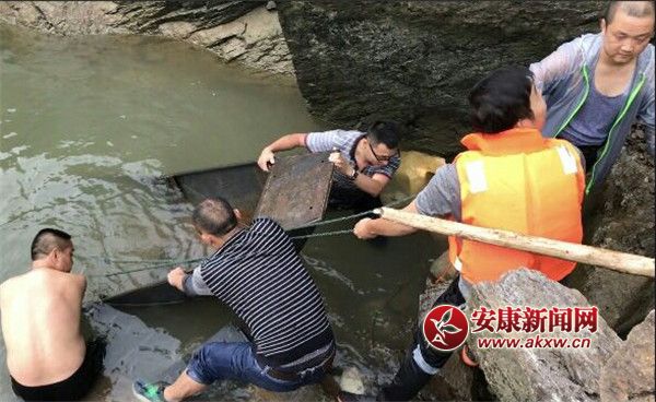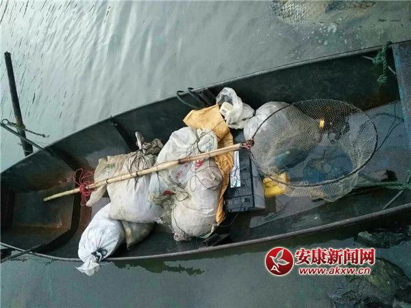當日下午16:00時許,石泉縣水利局接舉報稱石泉水庫大壩下有人非法電魚消息后,當即指派漁政執(zhí)法人員前往查處。經(jīng)現(xiàn)場查看,水庫大壩下卻有一疑似捕魚船只在壩下江面游弋,行跡十分可疑。由于大壩下游山體險峻,執(zhí)法人員只好采取一邊分組盯守,一邊通知相關(guān)人員準備橡皮伐及攀巖工具。于此同時,城關(guān)派出所民警也聞訊出警進行現(xiàn)場警戒,并共同商議行動方案。執(zhí)法人員決定冒險分兩組分別向非法捕撈嫌疑人藏匿地點靠攏。一組劃橡皮伐由漢江左岸向壩基右岸靠攏,一組由右岸峭壁攀巖而下,由于灘險流急,崖高壁陡,兩組人員行進都十分困難且相當危險,稍有不慎就有墜河跌崖的危險。當執(zhí)法人員抵達右岸壩基時,非法捕撈嫌疑人早已利用熟悉地形和水性好的優(yōu)勢先將船只灌水沉入江中后,又將漁具藏匿后選擇隱蔽路線逃之夭夭。經(jīng)執(zhí)法人員進行近一個小時的仔細搜索,終于在壩基右岸一巖壁下十分隱蔽的水灘里發(fā)現(xiàn)了沉入水下的船只。由于船只藏匿地地勢險要,且水下水情不明,執(zhí)法人員幾經(jīng)試探后,才小心謹慎的潛入水下將沉船拖出水面。現(xiàn)場共收繳電瓶等非法捕撈漁具10余件,漁獲物40余斤。