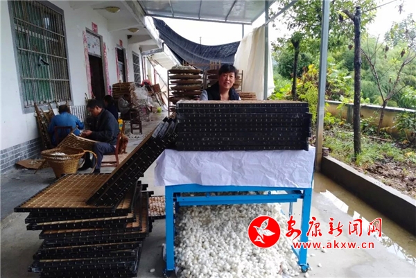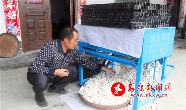 “通過(guò)幾季養(yǎng)蠶比較,用快速取繭機(jī)取100個(gè)塑框木質(zhì)方格蔟上的蠶繭也就40多分鐘,而100個(gè)紙質(zhì)方格簇10來(lái)個(gè)人摘繭最快也要一天半,對(duì)比起來(lái)快速取繭機(jī)太省時(shí)省力高效了。”蔡明勇對(duì)快速取繭機(jī)很滿意,他打算來(lái)年將家中的方格簇進(jìn)行大改良,全部用上塑框木質(zhì)方格蔟。