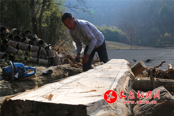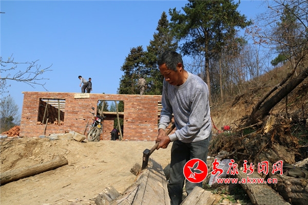 石泉新場(chǎng)村村民許興平這幾天在幫同村的陳開錫家建房,因?yàn)榈靥幤h(yuǎn),只能建造磚混結(jié)構(gòu)的房屋,需要利用木料的地方很多,這也讓許興平的木匠手藝派上了用場(chǎng)。