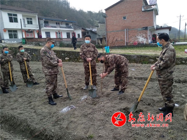 本網(wǎng)訊(通訊員 武杰)3月12日上午,陽光明媚,石泉縣委常委、人民武裝部部長陳曉軍及縣人民武裝部干部、各鎮(zhèn)人武專干來到中池鎮(zhèn)筷子鋪村,開展種植擁軍樹活動,義務為筷子鋪園區(qū)栽種蜂糖李。
