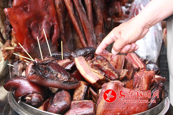 “第一次來第一回吃,之前就聽朋友說這邊山水很美,臘肉很好吃,特意過來買一點兒嘗一嘗。這個臘肉跟我們平時吃到的肉不一樣,吃著味道非常香、肥而不膩,剛剛買了一百多塊錢的準(zhǔn)備帶回去。”王女士品嘗著美味高興地說道。