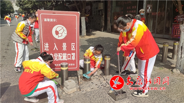 活動(dòng)中,在老師組織下,該校少先隊(duì)員有序來(lái)到老街、禹王宮、北門(mén)巷等區(qū)域。根據(jù)活動(dòng)分工,各班學(xué)生手持掃帚、鐵鍬、抹布、垃圾袋等勞動(dòng)工具分赴各自的義務(wù)清掃區(qū)。期間,少先隊(duì)員們分工明確、團(tuán)結(jié)協(xié)作,發(fā)揚(yáng)不怕臟、不怕苦、不怕累的精神,有的少先隊(duì)員用抹布擦洗街道兩側(cè)的宣傳欄,有的清掃街道上的落葉和白色垃圾,有的集中打包清運(yùn)垃圾,孩子們忙得不亦樂(lè)乎,用自己的實(shí)際行動(dòng)詮釋雷鋒精神的時(shí)代內(nèi)涵,為“三宜石泉”建設(shè)貢獻(xiàn)力量。