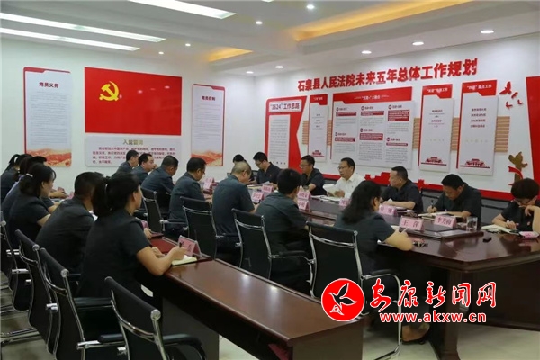 本網(wǎng)訊(通訊員 郭程)近日,石泉縣人民法院召開(kāi)黨組理論學(xué)習(xí)中心組(擴(kuò)大)會(huì)議,傳達(dá)學(xué)習(xí)習(xí)近平總書(shū)記重要講話精神和中央有關(guān)文件,并傳達(dá)縣委第十五次常委會(huì)、縣委理論中心組2022年第八次集中學(xué)習(xí)會(huì)議和全縣作風(fēng)建設(shè)大會(huì)精神。