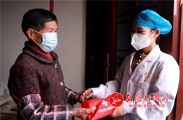 “袁阿姨,這個是免費的防疫物品,有什么問題隨時和我聯(lián)系。”石泉縣城關鎮(zhèn)黃荊壩村,71歲的袁秀梅常年獨居,村醫(yī)劉玉琴為其發(fā)放“防疫健康包”,詳細詢問袁秀梅近期健康狀況,講解個人防護和日常身體健康監(jiān)測相關知識。收到健康包的袁秀梅很開心:“送的都是我們需要的,有你們在,我特別安心。”