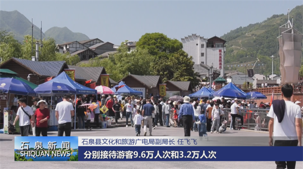 石泉縣文化和旅游廣電局副局長 任飛飛:全縣五一期間,累計(jì)接待游客 39.85 萬人次,同比去年增長 180%,旅游綜合收入 2.19 億元,同比去年增長145%。其中漢江石泉古城接待游客10.6萬人次,后柳水鄉(xiāng)、饒峰驛站分別接待游客9.6萬人次和3.2萬人次,醉美桑海接待游客2.82 萬人次。中壩大峽谷接待 1.92 萬人次。假日期間,山水體驗(yàn)、休閑觀光、親子研學(xué)、民俗文化成為文旅市場選擇熱點(diǎn)。
