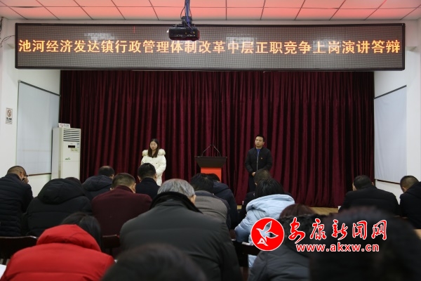 安康新聞網(wǎng)訊(通訊員 王亞莉)自石泉池河鎮(zhèn)機(jī)關(guān)事業(yè)單位工作人員競爭上崗雙向選擇工作啟動(dòng)以來,23名干部踴躍報(bào)名中層正職,精心準(zhǔn)備,戎裝上陣,逐一上臺(tái),分別……
