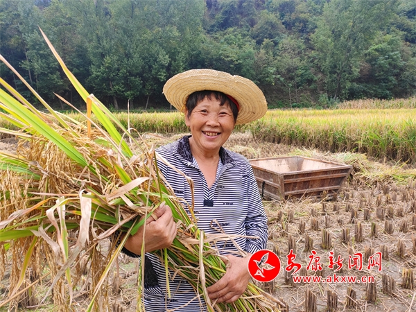 仙河鎮(zhèn)還有少部分像陳尚友這樣的傳統(tǒng)收割農(nóng)戶,受地形條件限制,很多稻田收割機無法到達(dá),傳統(tǒng)收割方式保留至今,也成為金黃色稻田間的一道風(fēng)景線。