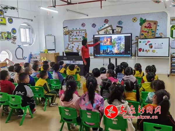 在周一升旗例會上,圍繞“消防記心中,安全伴一生”為主題晨會,值班老師以發(fā)生在身邊的鮮活事例,為全體師幼進行消防安全知識宣傳。中班小朋友們還表演了《好男兒當消防》等兒歌,激勵小朋友們從小立志當消防員,為國家做貢獻。