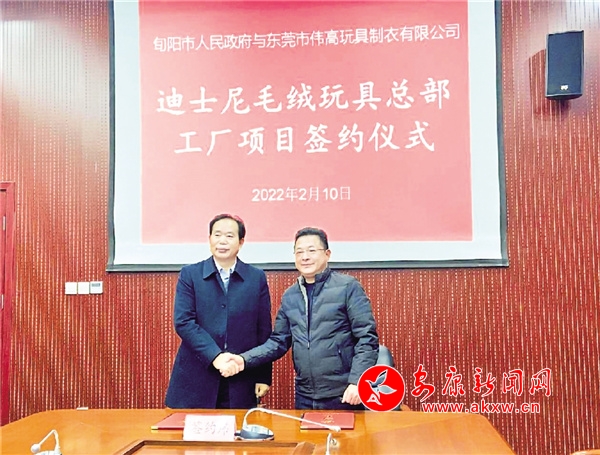 旬陽(yáng)市委副書記、代市長(zhǎng)羅本軍(左一)出席迪士尼毛絨玩具總部工廠項(xiàng)目簽約儀式