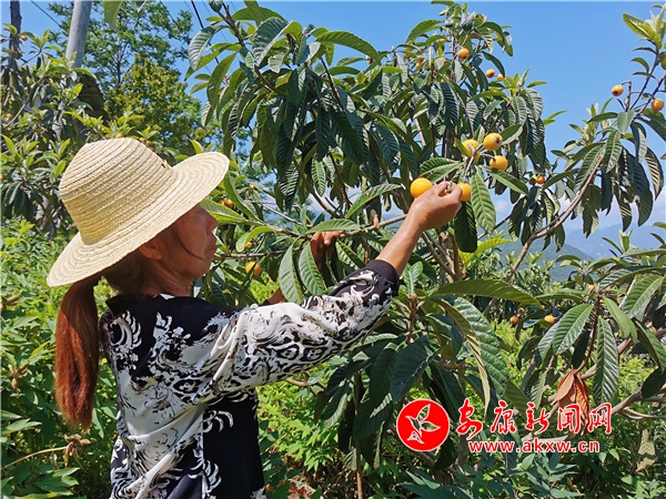 果農(nóng)們正忙著采摘、包裝、發(fā)運(yùn),臉上寫滿了豐收的喜悅。果農(nóng)楊作芳正在地里采摘枇杷,只見(jiàn)她左手挎著果籃,右手抓住枝丫,熟練地將一顆顆枇杷摘下來(lái),看到品相特別好的,她就拿起來(lái)展示一下,“你看這幾顆又大又圓,熟透了,絕對(duì)特別甜。”她從2016年開(kāi)始流轉(zhuǎn)自己的土地給合作社種植枇杷,總共種了16畝。“今年的枇杷剛剛成熟,掛果比去年還多。我摘一天給我發(fā)100元工資,枇杷一斤可以賣到10塊錢,等枇杷都賣了,我能穩(wěn)穩(wěn)賺到4萬(wàn)多呢。”剛從地里采摘完枇杷正在裝箱的楊作芳談及枇杷給她帶來(lái)的收益樂(lè)開(kāi)了花。在枇杷園內(nèi)除了果農(nóng)外,也引得不少游人前來(lái)觀光采摘。