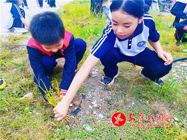 “這些在田間勞作的場景,孩子們以前只能在電視里見到,現(xiàn)在讓他們親自參與,體驗農(nóng)活勞作的苦與樂,培育他們識五谷、勤四體、分四季、知節(jié)氣的文化涵養(yǎng)……”勞動實踐課指導老師程德乾,一邊忙著指導孩子們學習各種農(nóng)活技術要領,一邊和身邊的同事聊著開設勞動實踐課的現(xiàn)實意義。