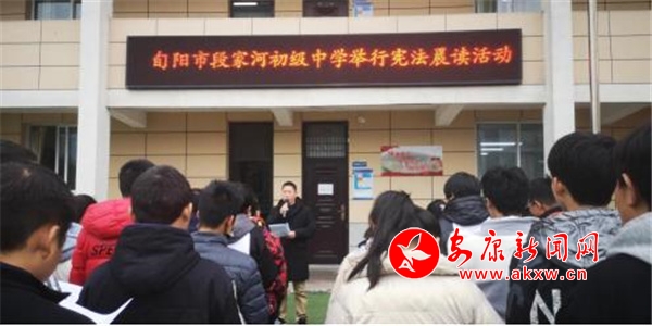 學(xué)校里,開展憲法晨讀,全體師生共同參與,同步跟讀憲法條款,讓學(xué)生通過學(xué)習(xí)憲法的基本原則和基本知識,感受憲法精神,體悟憲法威嚴,在校內(nèi)形成“積極宣傳憲法、尊崇憲法、維護憲法,弘揚憲法精神,樹立憲法權(quán)威,增強法治觀念”的新風尚。