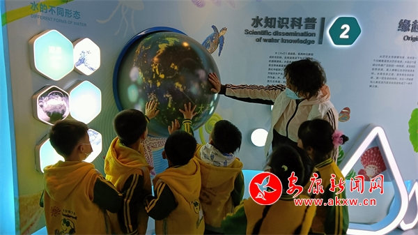 小朋友們走進(jìn)水文化館,立即被神奇的“生命之源”所吸引,精致的浮雕、科技感濃重的電子屏幕等展項(xiàng)都牢牢讓小朋友們注目觀看。通過觀看水文化科普系列動(dòng)漫宣傳視頻,使小朋友們近距離體驗(yàn)到水文化的魅力和水利科技科普。解說員積極和小朋友互動(dòng),通過現(xiàn)場問答、操作互動(dòng)電子屏等多種方式,讓孩子及家長們了解了我國的水歷史、水狀況等內(nèi)容,更加清楚地了解關(guān)于漢江和旬河的知識(shí)。同時(shí)引導(dǎo)小朋友們樹立從小“愛水、惜水、節(jié)水”意識(shí),倡導(dǎo)規(guī)范用水、合理用水,用實(shí)際行動(dòng)讓節(jié)約用水成為一種新時(shí)尚。