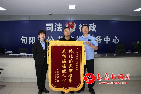 “感謝你們幫我母親爭取到賠償,一面錦旗不足以表達我的感激之情,還望收下。”劉某說著便打開一面鐫刻著“依法為民解難事,真情溫暖感人心”的錦旗。