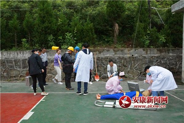 演練模擬事件背景 由于長(zhǎng)時(shí)間降雨,鎮(zhèn)坪縣醫(yī)院籃球場(chǎng)處發(fā)生大面積滑坡,滑坡面積蔓延至醫(yī)院大樓,導(dǎo)致至少1人被困,3人重傷,5人輕傷,滑坡仍在持續(xù)。值班室人員發(fā)現(xiàn)此事件后,立即向應(yīng)急辦公室報(bào)告。應(yīng)急辦立即將情況報(bào)告給潘院長(zhǎng)及主管局。潘院長(zhǎng)迅速趕到現(xiàn)場(chǎng)并宣布立即啟動(dòng)應(yīng)急預(yù)案、開通綠色通道。5分鐘內(nèi)醫(yī)療救援組、應(yīng)急聯(lián)絡(luò)與信息發(fā)布組、應(yīng)急搶險(xiǎn)組等8個(gè)工作組迅速到位,分別在各自崗位展開工作。