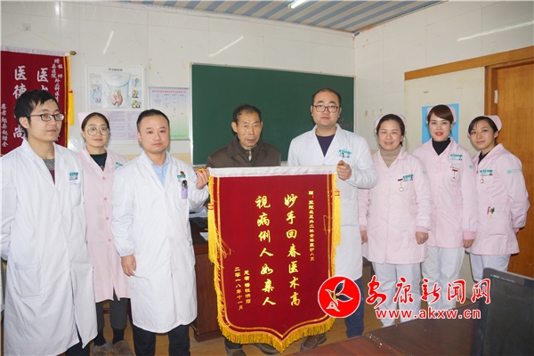 安康新聞網(wǎng)訊(通訊員 杜波兒 鄒發(fā)華)11月28日,家住小曙河中壩7組的患者楊桂洪,將一面寫有“妙手回春醫(yī)術(shù)高,視病倒之人如親人”金色大字的錦旗贈給了鎮(zhèn)坪縣醫(yī)院外二科,并不停舉起大拇指稱贊醫(yī)護人員了不起,給了他第二次生命。
